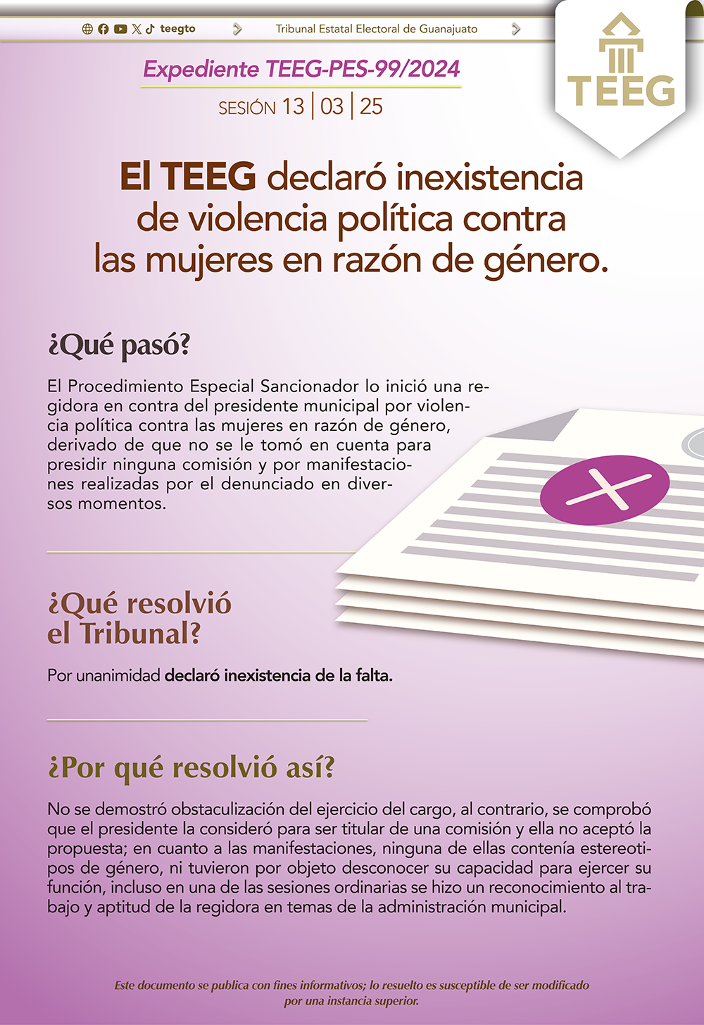 El TEEG declaró inexistencia de violencia política contra las mujeres en razón de género